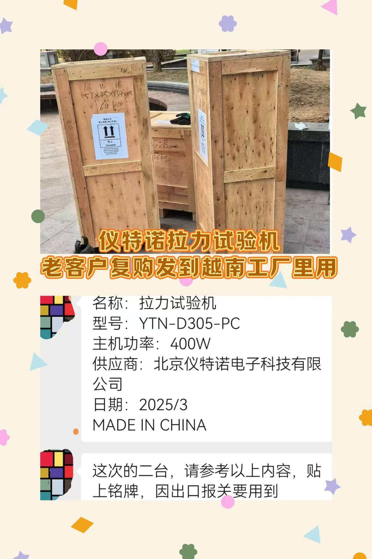老朋友就是給力!再次復購2臺單柱拉力試驗機,發(fā)往越南工廠。感謝信任,我們一定用靠譜的機器和貼心的服務(wù),讓您用得更放心!