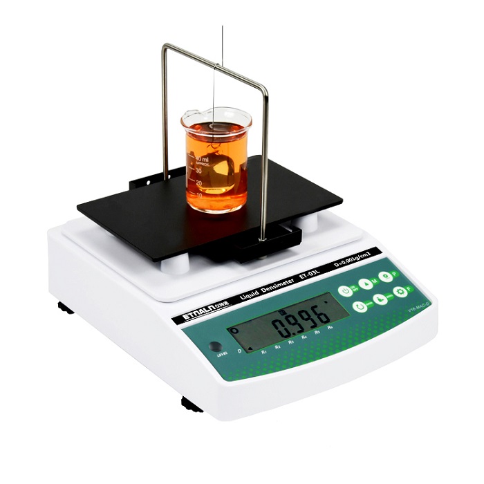 實驗室常用的電子式液體密度計怎么測比重呢?采用阿基米德原理浮力法的電子液體密度計,以常用的ET-03L為例,測量液體比重的步驟簡單,基本上在拿到儀器后,看下說明書就可以操作。