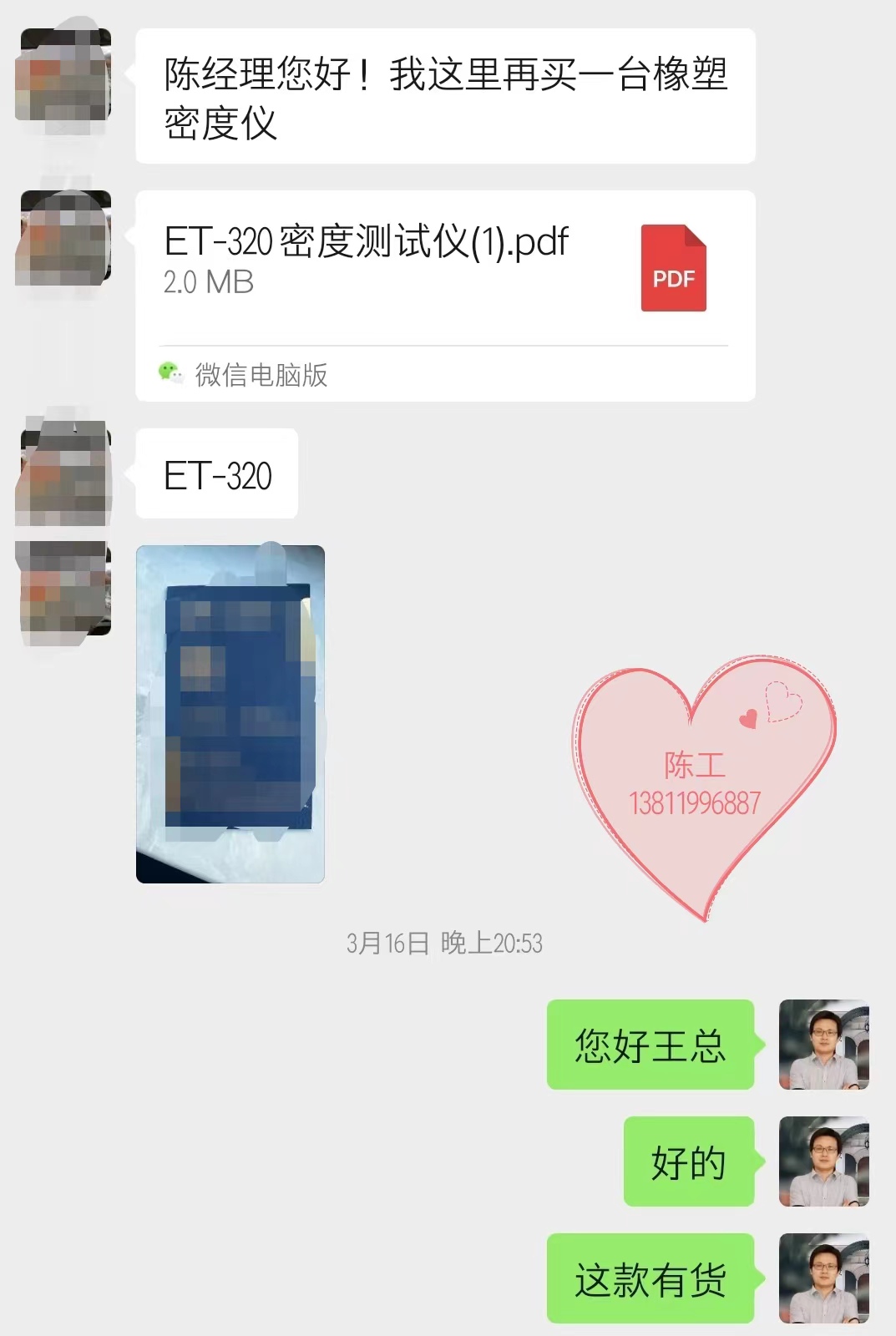 塑料密度的測定方法,塑料行業常用的密度儀器ET-320,也是我們的塑料行業在用過這個型號的密度計后,建分廠復購和轉介紹多的一個型號,像這位王總時隔2年再拿采購ET-320密度測試儀。