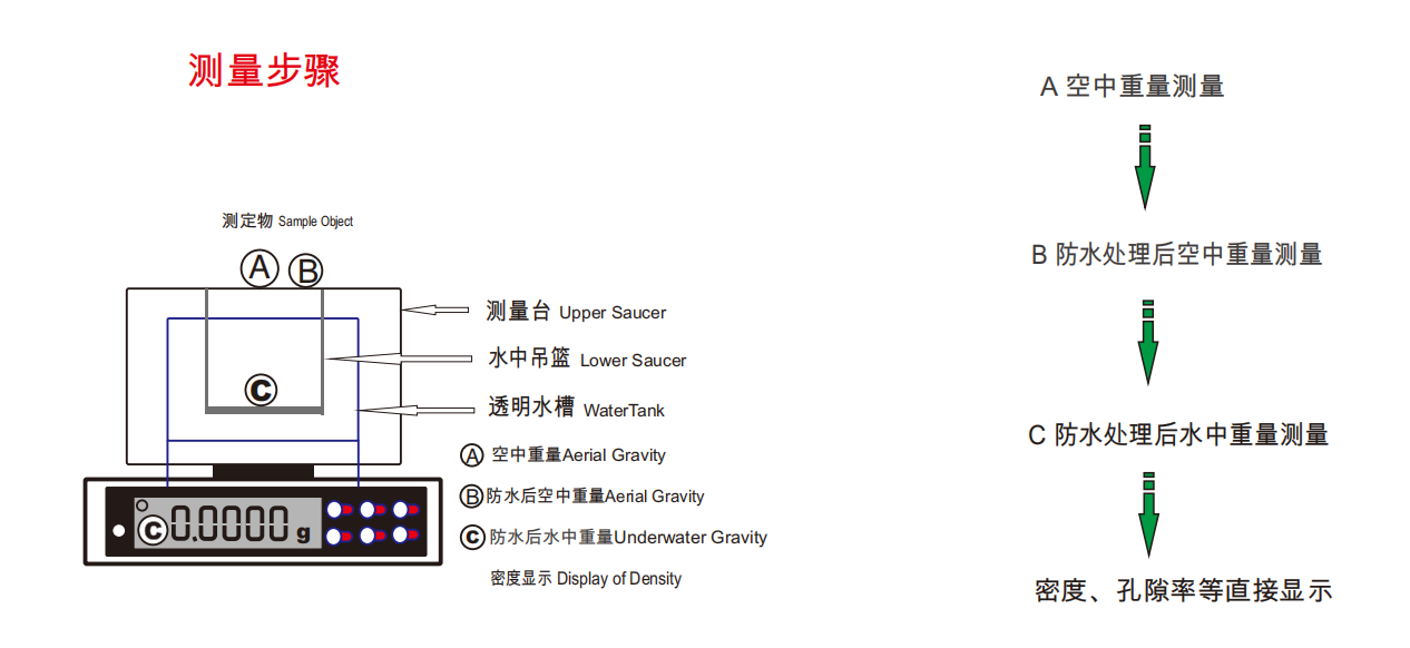 儀特諾密度儀測(cè)量三步曲,以ET-320M或ET-120HM為例,測(cè)量塊狀、片狀等不規(guī)則多孔樣品,就下面簡(jiǎn)單的三步: