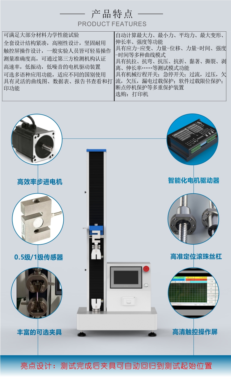 4、具有測試完成后自動返回至測試起始的自動歸位功能。